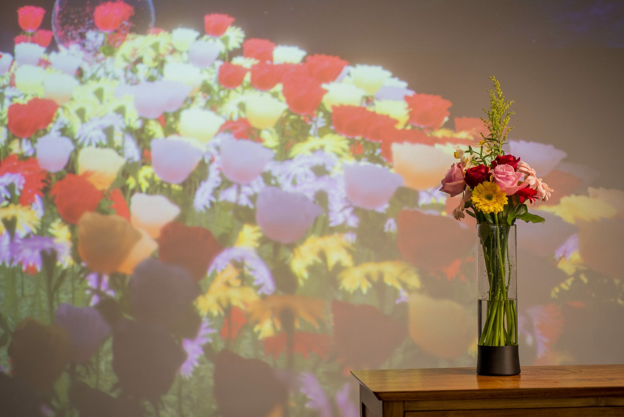 “SenseVase with Virtual Memorial” is a design concept for online floral tribute practices. SenseVase is a smart vase to detect flowers placed in it, and a 3DCG Virtual Memorial illustrates floral tributes given by people using SenseVases at home. While floral tributes are commonly used for the public commemoration of victims of disasters, war, and other accidents, flowers in vases color everyday life. In this work, these features of flowers are intertwined with the recent phenomenon of online memorials to develop a virtual floral tribute concept that includes physical rituals.